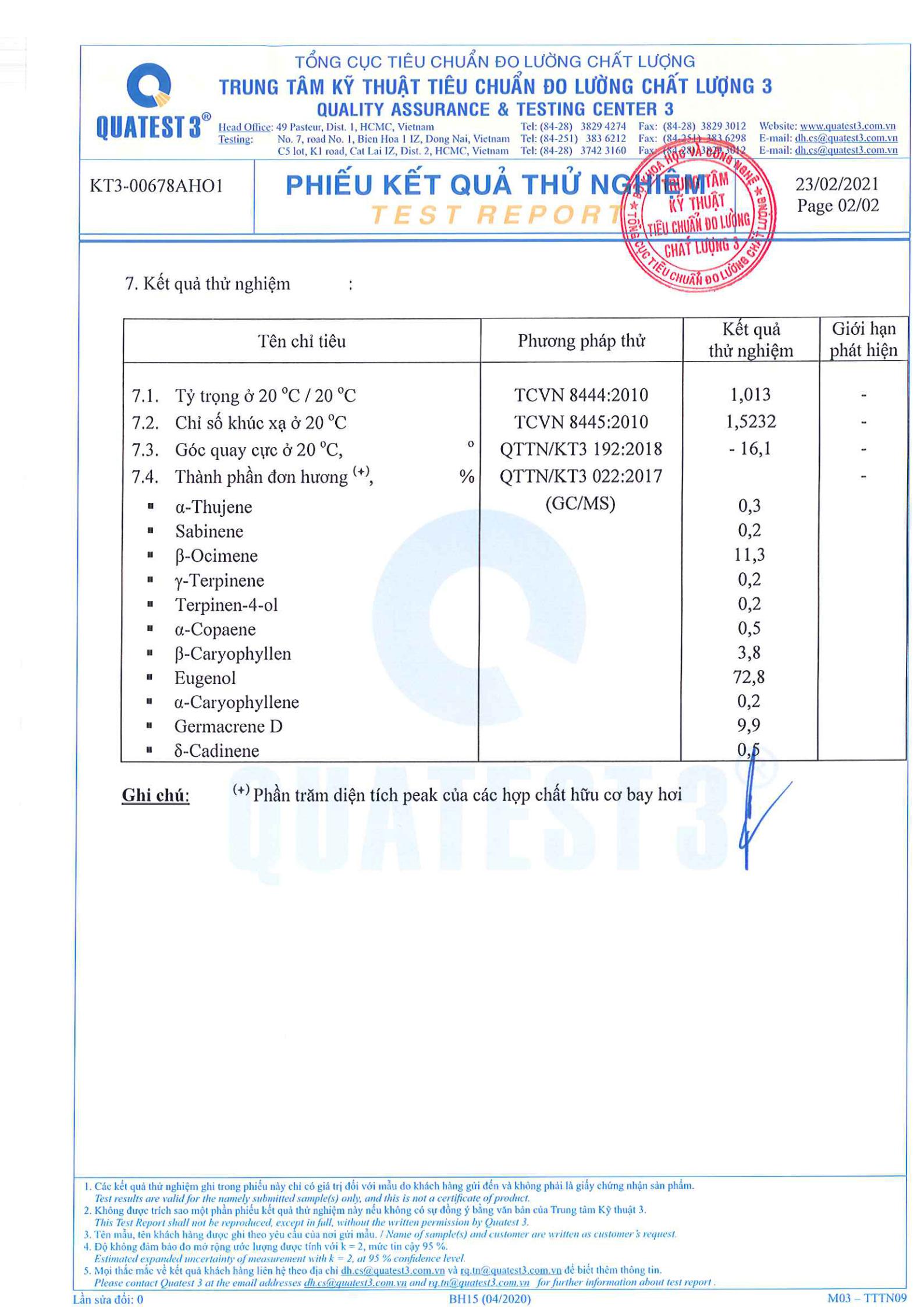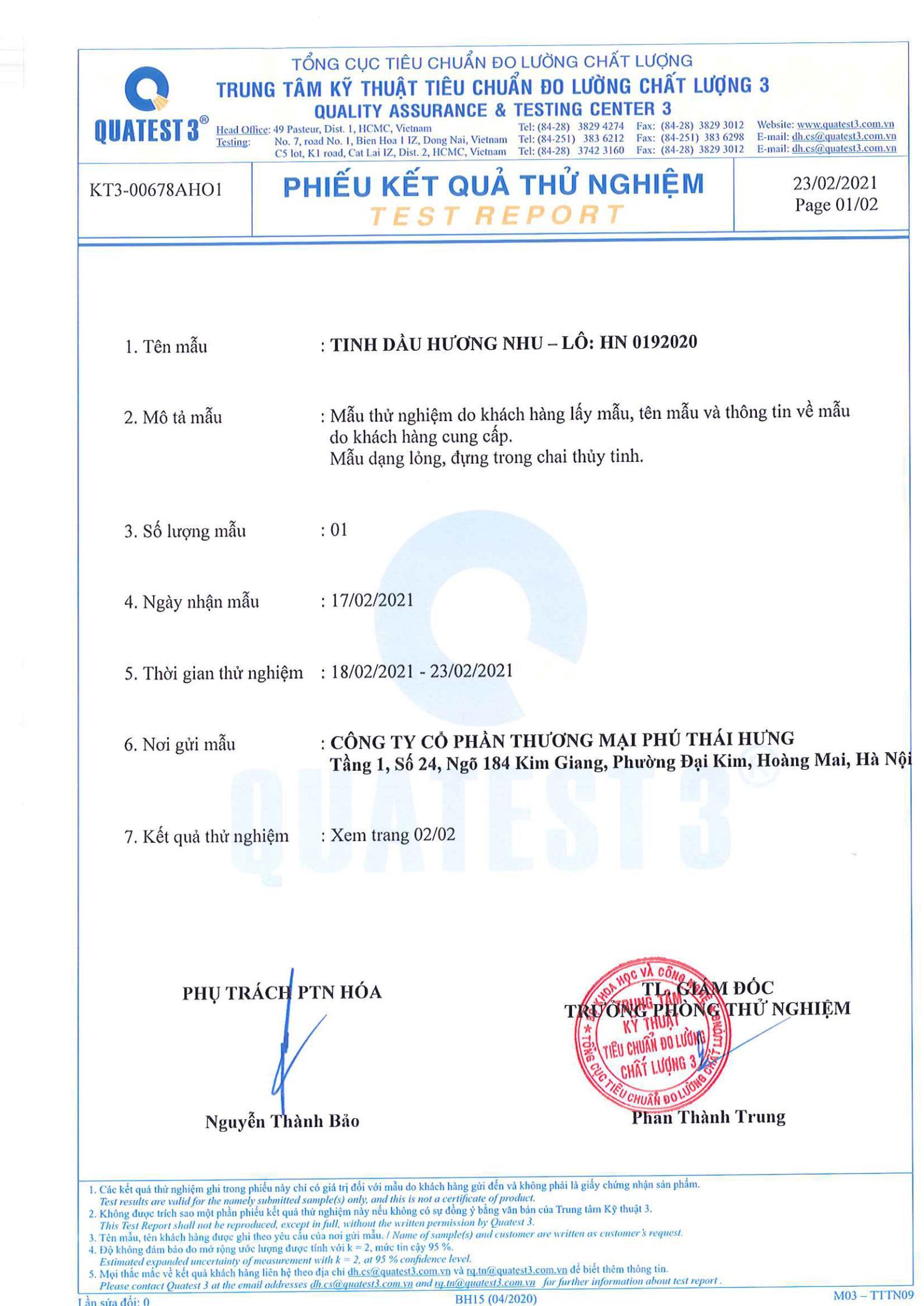 KẾT QUẢ KIỂM NGHIỆM TINH DẦU HƯƠNG NHU