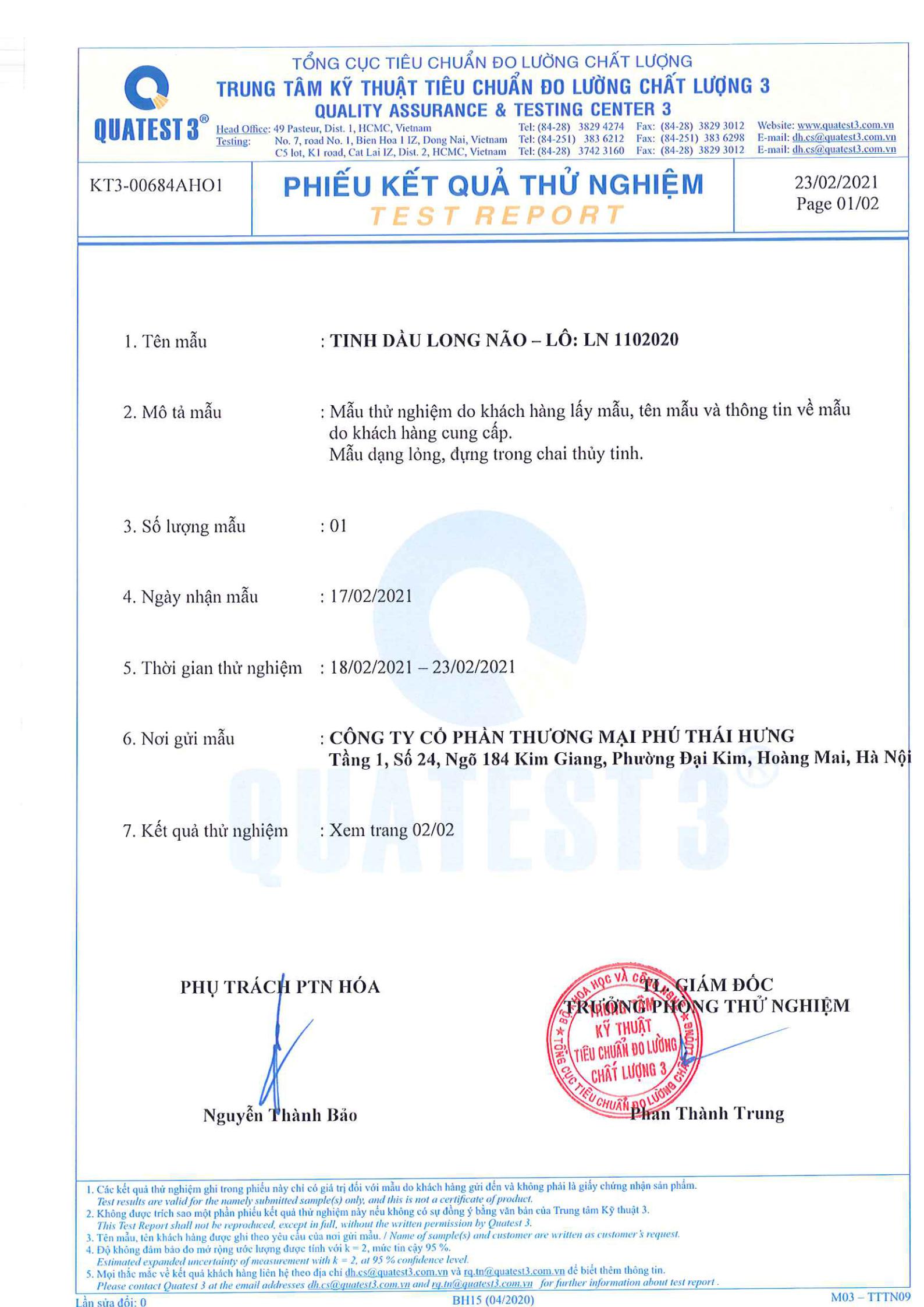 KẾT QUẢ KIỂM NGHIỆM TINH DẦU LONG NÃO